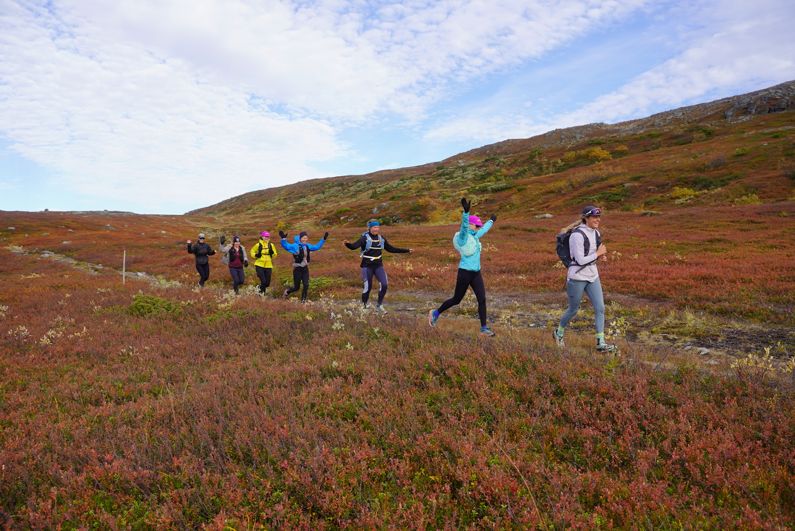 – Att springa i fjällterräng är annorlunda mot asfalt. Jag vill inte ange en precis minuter per kilometer-tid, men farten är satt till att det går inte fortare än 6.30 min/km där det är platt, lutar det uppför går det långsammare. Springer du i den takten hemma klarar du detta läger fint. När leden sticker av brant uppför går vi, när det planar ut lufsar vi på. Det handlar om upplevelse, att kunna titta upp och le, ta in omgivning och vidder. Vi vet att det kan vara både extra läskigt och jobbigt att springa i grupp. Här ser vi gemensamt till att alla har det bra! Kan du springa 10 km hemma, med paus för kort promenad då och då så fixar du detta läger!